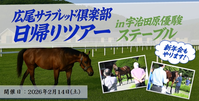 今年最初の【関西地区・倶楽部イベント】となる日帰りツアーを【2月14日】に開催します。バス1台を貸し切って、宇治田原優駿ステーブルの施設見学を実施。普段はなかなか見ることのできない在厩馬の様子や、調教風景を間近でご覧いただけます。