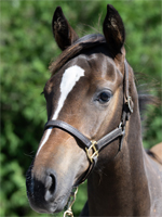 当倶楽部の出身であるエピファレーヌの仔が満を持してのラインナップ入り。母譲りの首や肩、父をイメージさせる臀部や後肢から成るミドルサイズの好馬体は、しっかりとした骨格を誇っている。快活で人懐っこく、物怖じしない好奇心旺盛な性格はこの先の馴致や調教にも有利に働くと思われ、放牧地で他馬たちの先頭を進んで元気に駆け回る踏み込みの力強さからもダートの短~中距離でフルに能力を発揮してくれそうだ。その馬名からファンも多い半姉サラダ、そしてGⅠ級のタイトル奪取に成功した同父のアンモシエラに続き、話題性のある走りで最高の記念日を迎えたい。